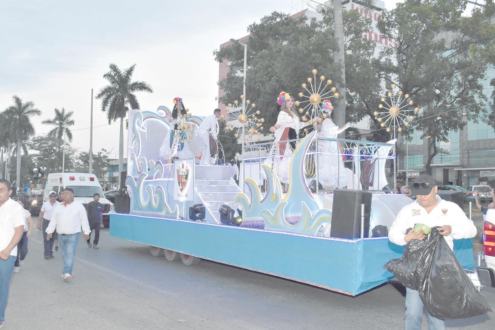 Encabezó este recorrido la Corte Real de las Fiestas del Petróleo compuestas por la Reina Saraí Jonguitud Alvarado,
