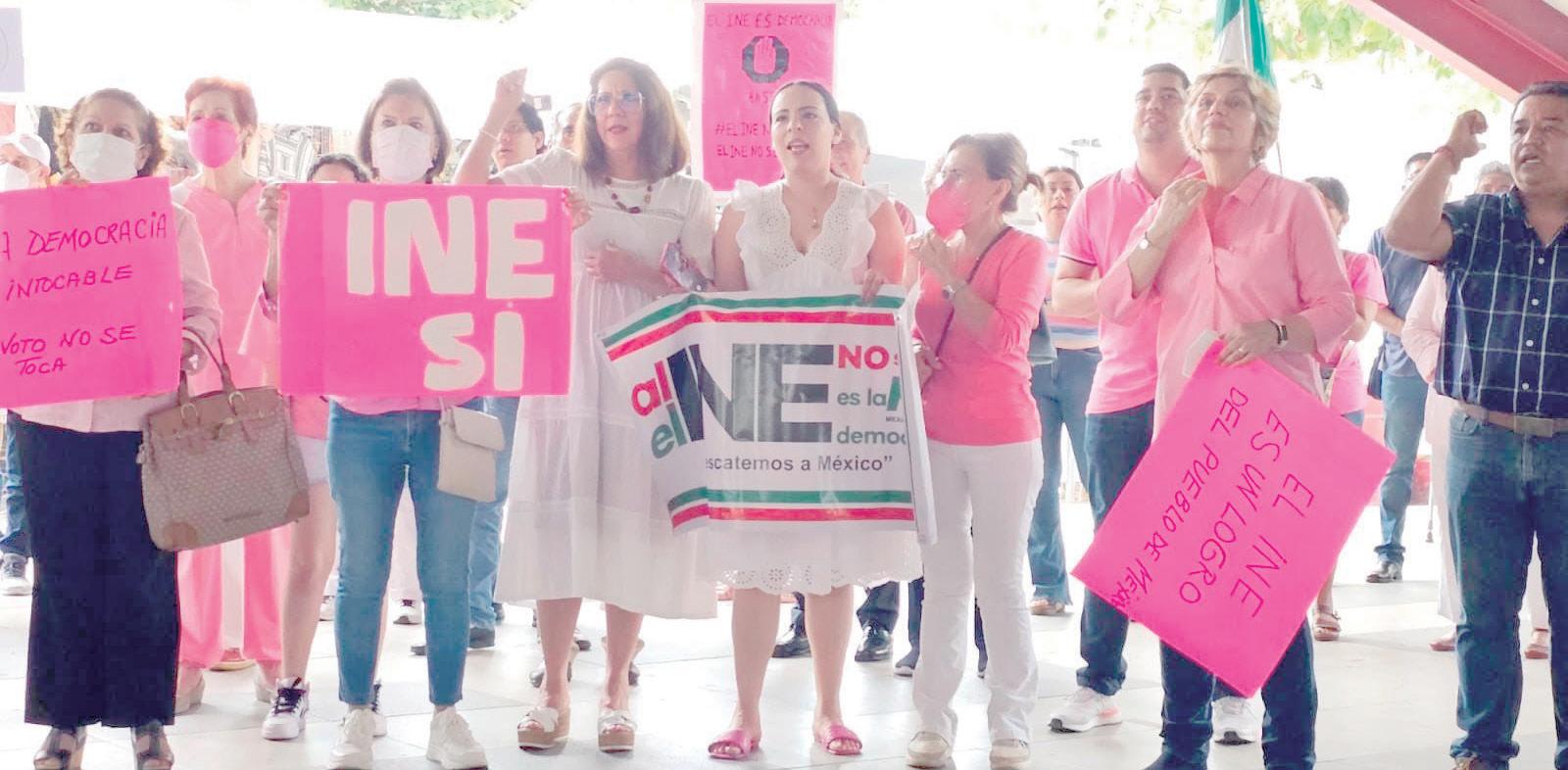 Los asistentes gritaron consignas como el lema que “el INE no se toca” y “mi voto no se toca”, y afirmaron que el Plan B” de la reforma electoral propuesta por el Presidente de la República, Andrés amenaza la autonomía de este organismo, debido a la eliminación de distritos en el territorio nacional, así también, pone en riesgo la democracia