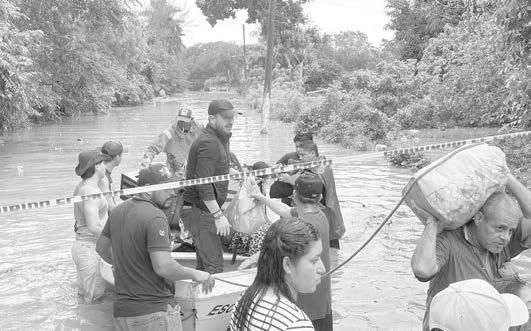 visto afectada ante el impacto de fenómenos meteorológicos en esta entidad. En este contexto se desplegaron tres Brigadas de Respuesta ante Emergencias con 100 elementos navales, quienes apoyan en los municipios de Álamo Temapache y Poza Rica, con 17 vehículos, entre ellos dos autobuses, dos pipas de agua y dos ambulancias, así como equipo especializado como una motobomba de achique, la cual sirve para reducir los niveles de agua en las zonas de mayor afectación; así como una planta generadora de energía eléctrica. Es de resaltar que personal naval ha brindado apoyo con tres evacuaciones médicas y 116 personas han sido auxiliadas en zonas inundadas; también se emplea una embarcación menor tipo BOA para traslados de familias afectadas a zonas seguras y se ha repartido agua embotellada. Asimismo, se han realizado reuniones y acciones con la comunidad marítima y autoridades de Protección Civil y de los tres órdenes de gobierno, para brindar atención a quienes así lo requieran.