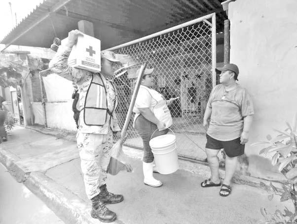 Destacó que entre las acciones de emergencia que se realizan se prioriza la apertura de caminos, particularmente de las comunidades que continúan aisladas, se garantizan puentes aéreos para la entrega de despensas y de agua, la realización del Censo del Bienestar para conocer en qué situación está cada persona, así como la limpieza y la sanitización para evitar el incremento de enfermedades como el dengue.
