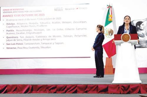 CIUDAD DE MÉXICO.- La Presidenta Claudia Sheinbaum Pardo resaltó que se destina toda la fuerza del Estado mexicano para garantizar el apoyo a la población afectada por las lluvias en Veracruz, Hidalgo, Querétaro, Puebla y San Luis Potosí, por lo que reiteró, que no se va a dejar a nadie en el desamparo.