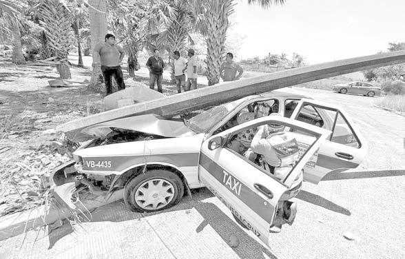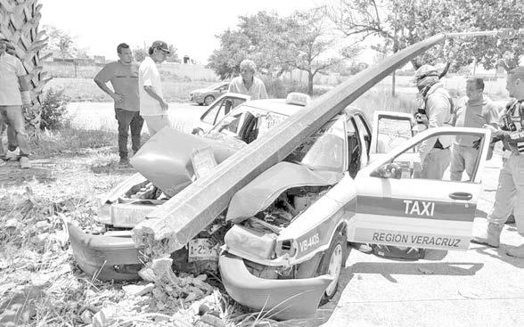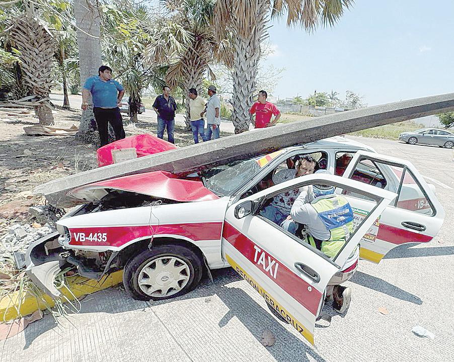 De acuerdo con testigos, un vehículo blanco que circulaba en sentido contrario impactó en un costado a un taxi que transitaba a exceso de velocidad, provocando que este último se proyectara contra un poste de concreto.