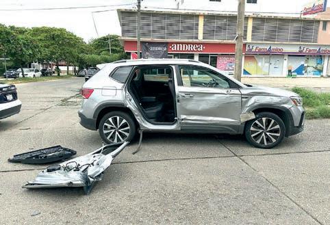 En el choque participaron una camioneta Volkswagen Taos, color gris y placas YCR-187-B, que resultó con la puerta trasera derecha completamente desprendida debido al fuerte impacto; así como una camioneta Toyota Hilux, con matrícula XR-6137-A, que presentó daños en la parte frontal.