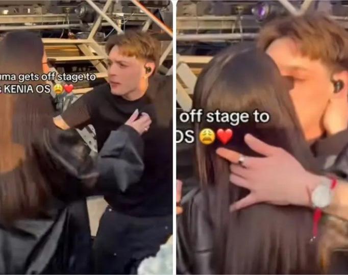 Minutos después de esa dedicatoria, el cantante interrumpió su presentación, bajó del escenario y se acercó hasta donde se encontraba Kenia.