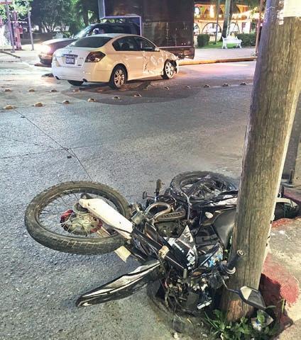 Un joven motociclista identificado como Iker “N”, de 23 años y vecino de la colonia Tlatelolco, resultó con traumatismo craneoencefálico moderado y fractura de fémur izquierdo, luego de verse involucrado en un aparatoso accidente ocurrido la madrugada de este domingo en el cruce de las calles Hidalgo y Ávila Camacho, en la zona centro de esta ciudad.