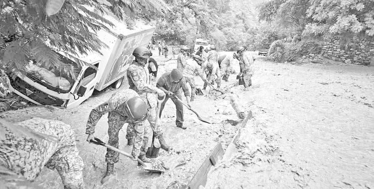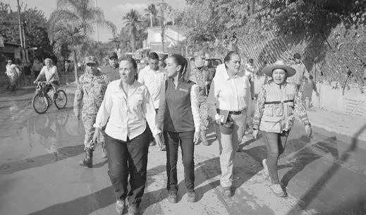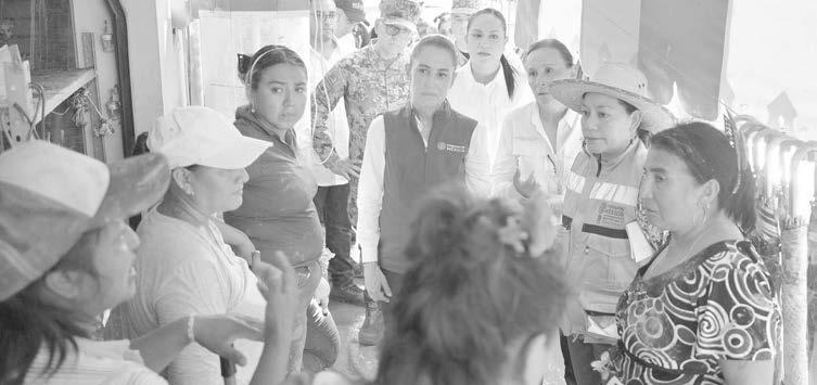 de maquinaria pesada para limpiar, retirar escombros y reabrir caminos en coordinación con la Secretaría de Infraestructura, Comunicaciones y Transportes y la Secretaría de Infraestructura y Obras Públicas. Actualmente permanecen tres cabeceras municipales y 37 comunidades sin comunicación terrestre; habilitados 50 refugios temporales que atienden a 4 mil 768 personas con alimentación, atención médica y acompañamiento institucional.