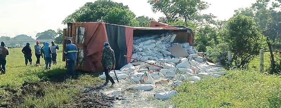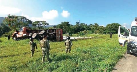 Elementos de la Guardia Nacional División Carreteras, así como de la Secretaría de Marina y la Policía Municipal, acordonaron la zona para evitar riesgos a otros automovilistas y prevenir posibles actos de rapiña, ya que el camión transportaba productos