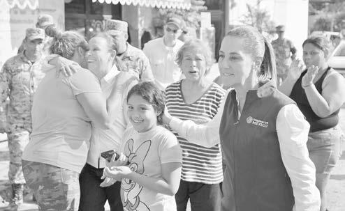 Destacó el apoyo del Gobierno de México, los gobiernos de Tamaulipas y Nuevo León, así como de las secretarías de Marina y de la Defensa Nacional y Pemex, con quienes se estableció un puente aéreo de 20 aeronaves para atender a 46 comunidades incomunicadas, asegurando el suministro de alimentos, agua y servicios médicos. Como parte del apoyo humanitario, se han distribuido 58 mil 288 despensas, 47 mil 920 comidas calientes y 227 mil 335 litros de agua embotellada entre las familias afectadas; además, operan más 600 unidades