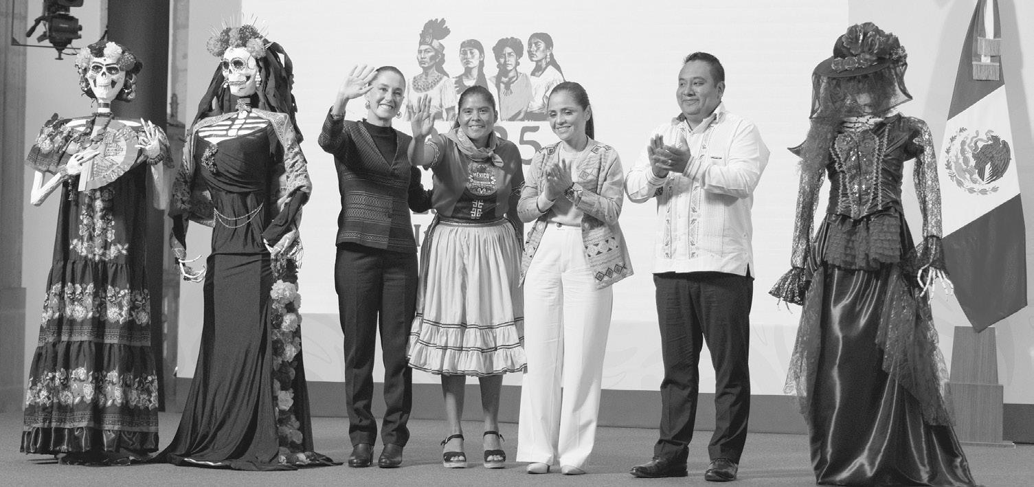 La Presidenta Claudia Sheinbaum Pardo informó que fue enviada a España la exposición La mitad del mundo. La mujer en el México indígena. Historias tejidas, con la finalidad de visibilizar la grandeza cultural mexicana, a través de piezas arqueológicas y etnográficas que representan a las mujeres indígenas.