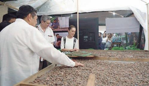 Agregó que esto se suma al apoyo que productoras y productores de cacao han recibido a través de Alimentación para el Bienestar, que les permite vender el cacao seco y tostado para incrementar sus ganancias con precios justos y garantía de comercialización en las Tiendas Bienestar.