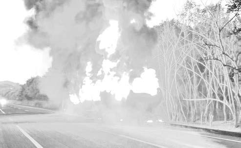 Una pipa cargada con combustible se incendió está madrugada de domingo en la autopista México-Tuxpan, a la altura de la comunidad Miahuapan, munici-