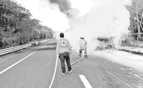 El incendio de la unidad provocó la movilización de los cuerpos de emergencia para tratar de sofocar las llamas. Elementos de la Guardia Nacional abanderaron la zona para facilitar las labores de los servicios de emergencia y desviaron el tráfico por la carretera libre.