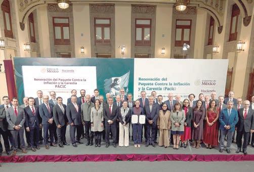 Claudia Sheinbaum Pardo firmó, con tiendas de autoservicio y agroindustrias, la renovación del Paquete Contra la Inflación y la Carestía (Pacic), que mantiene en 910 pesos el precio de los 24 productos de la canasta básica, es decir, no aumenta su precio y con ello se cuida la economía popular.