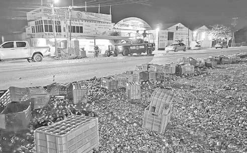 y media, con placas XV-93-499, identificada como Alexis S. M., de 21 años, circulaba cargado de cítricos cuando, presuntamente era conducido a exceso de velocidad cuando invadió el carril contrario y colisiona con un automóvil, al impacto maniobró abruptamente, pero terminó perdiendo el control y volcó sobre su costado izquierdo. La segunda unidad involucrada fue un automóvil marca Nissan, línea March, color gris, con razón social “Alarmas y Servicios de Seguridad Privada Mercurio” y con placas YNU-219-A, conducido por Rogelio H. C., de 58 años de edad, quien iba acompañado por una mujer. La uni-