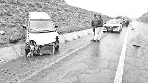 color gris circulaba con dirección hacia “El Caracol” y, debido al exceso de velocidad combinado con el pavimento mojado por la lluvia, el conductor perdió el control. La unidad salió de la cinta asfáltica y terminó semivolcada, impactándose contra una barda perimetral. Tras el fuerte golpe, la persona que viajaba en el asiento del copiloto resultó lesionada.