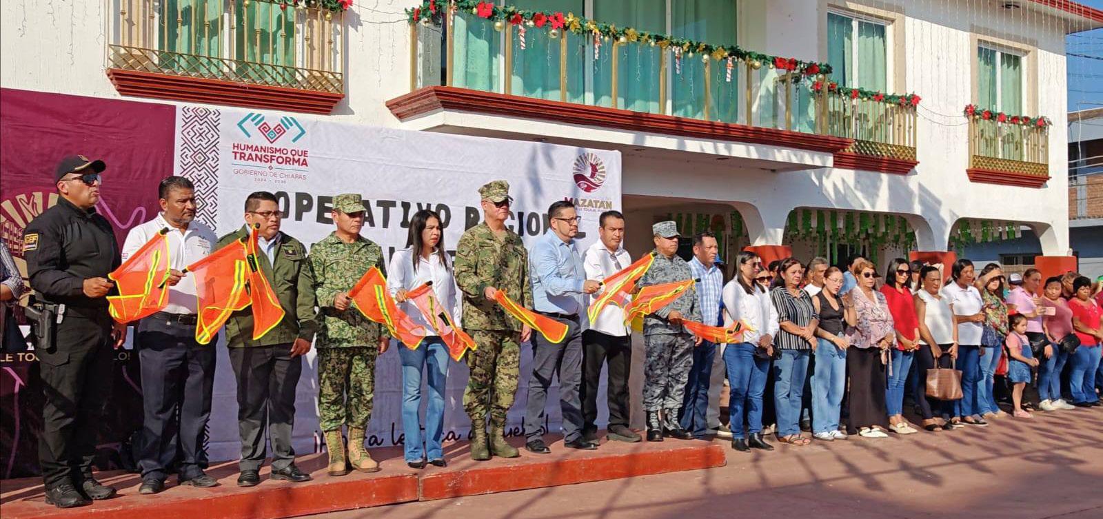 La Fiscalía General del Estado de Chiapas, Ejército Mexicano, la Marina Armada de México, la Secretaría de Seguridad del Pueblo y el Ayuntamiento de Mazatán, dieron el banderazo de inicio del despliegue de operativos disuasivos y preventivos, denominado Plan Sistemático Operativo Vacacional Guadalupe-Reyes 2025-2026, que tiene como