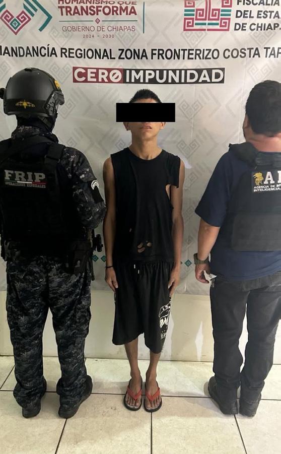 La Secretaría de Seguridad del Pueblo (SSP) a través de la Fuerza de Reacción Inmediata Pakal (FRIP) en coordinación con la Agencia de Investigación e Inteligencia Ministerial (AIIM) de la Fiscalía General del Estado (FGE) y la Secretaría de Seguridad y Protección Ciudadana (SSPC) del Gobierno Federal, detuvieron a una persona por el probable delito de violencia familiar, en el municipio de Tapachula. Resultado de patrullajes de prevención, disuasión del delito y proximidad social en el fraccionamiento La Primavera de la Perla del Soconusco, policías estatales detuvieron a Armando “N”, luego de ser señalado como el responsable de las agresiones perpetradas en contra de dos mujeres quienes al parecer son su madre y hermana.