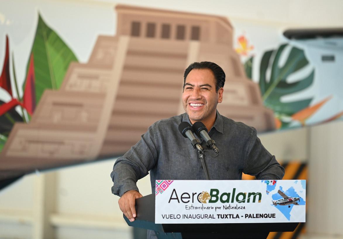En el marco de la inauguración de Aerobalam TuxtlaPalenque, el gobernador Eduardo Ramírez Aguilar destacó que esta acción forma parte de una estrategia para fortalecer la conectividad en todo el estado de Chiapas y seguir posicionando al sector turístico como una de las principales palancas del desarrollo económico.