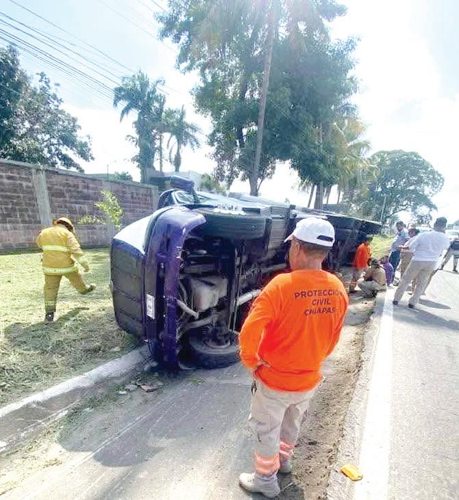 Daños materiales por varios cientos de miles de pesos, fue el saldo de un aparatoso percance automovilístico ocurrido este día sobre la carretera Tapachula-Puerto Madero, lugar donde un tráiler que transportaba mercancía volcó hasta caer a una cuneta, sin que por el momento se conozcan cuál o cuáles pudieron haber las causas que originaron el percance. De acuerdo con las primeras versiones, se sabe que el percance ocurrió al momento que un tráiler Peterbilt tipo caja con placas 71BF3B, circulaba al parecer con destino a la cabecera municipal de Tapachula, cuando al llegar a inmediaciones del fraccionamiento Valle Dorado y del estadio Olímpico, debido al parecer al exceso de velocidad y la falta de precaución, su conductor perdió el control del volante y trasladar caer a una cuneta terminó volcado sobre su costado izquierdo a orillas de la carretera.