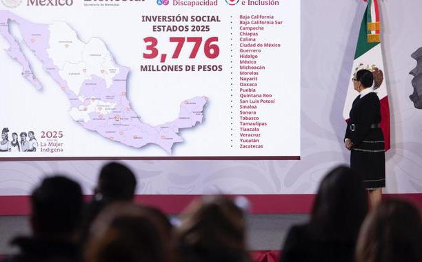 Campeche, Chiapas, Colima, Ciudad de México, Guerrero, Hidalgo, Estado de México, Michoacán, Morelos, Nayarit, Oaxaca, Puebla, Quintana Roo, San Luis Potosí, Sinaloa, Sonora, Tabasco, Tamaulipas, Tlaxcala, Veracruz, Yucatán y Zacatecas. Puntualizó que, del 2019 al 2025, la Pensión para el Bienestar de las Personas con Discapacidad, incrementó de 2 mil 550 a 3 mil 200 pesos bimestrales, lo que ha representado una inversión social en los últimos siete años de 141 mil 253 mdp.