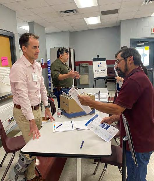 The PI/ENV team received kudos from the TxDOT Pharr District for their work on the FM 1423 public meeting in Donna, TX. Shown is Colin McGahey with members of the public.