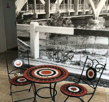 Az épület bejáratánál a háború végén felrobbantott híd fotója fogad bennünket. Legyen ez a kép a béke szimbóluma, a két partot összekötve jelképezze az együvé tartozást, hogy nézeteink különbözősége ellenére is egyformán emberek vagyunk.