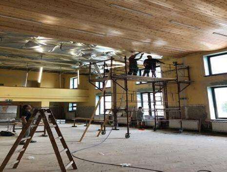 A szétvert kultúrházban állva, a tervrajzokat nézegetve jöttünk rá, hogy a tervezőmérnökök egyáltalán nem gondoltak arra, hogy itt majd valamikor színházi és egyéb előadások lesznek. Nem volt betervezve a színpadra a fénytechnika helye és a falban futó vezetékek sem, amire egy jó színházi előadáshoz feltétlenül szükség van. A lényeg az, hogy még időben észrevettük ezt a hiányosságot és sikerült is gyorsan átgondolni, megtervezni az egész színpadi világítás alapjait. A szükséges elektromos vezetékek bekerültek a falba, a kapcsolók és konnektorok szintén a helyükre kerültek. Behúztuk a falba a színpadi fénytechnika vezérlőegységének vezetékét is. Ez fogja összekötni az összes reflektort, amit egy helyről lehet majd vezérelni. Ezek azok a dolgok, amik most még nem látszanak, mivel még nem sikerült megvásárolni a szükséges reflektorokat. Folymatosan pályázunk és előbb-utóbb biztosan összejön, amit elterveztünk.