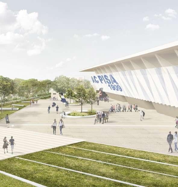 Un impianto moderno e amico dell’ambiente che sorgerà sul sedime di quello attuale e che sarà contraddistinto da una passeggiata in quota, con negozi e una grande piazza. Da elemento disturbante a opportunità di riqualificazione. I giornali locali hanno descritto così il nuovo stadio del Pisa firmato dallo studio Iotti+Pavarani Architetti che a fine 2018 è stato premiato dalla società