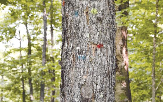 À l’automne 2023, ils ont identifié 34 érables à sucre dans 3 des parcelles d’exclusion et 34 érables à sucre avec des diamètres similaires dans les parcelles de référence. En 2024, tous ces érables ont été entaillés avec un protocole standardisé, c’est-à-dire entaillés avec une mèche 5/16" à une profondeur de 4,5 cm du côté sud du tronc, à 1,3 m de hauteur. Les chercheurs se sont rendus sur les sites à six reprises lorsque les conditions étaient propices à la coulée. Pendant les visites, on a mesuré la quantité de sève d’érable de plusieurs coulées retenue dans des barils au pied des arbres ainsi que la concentration de sucre de la sève directement au chalumeau.