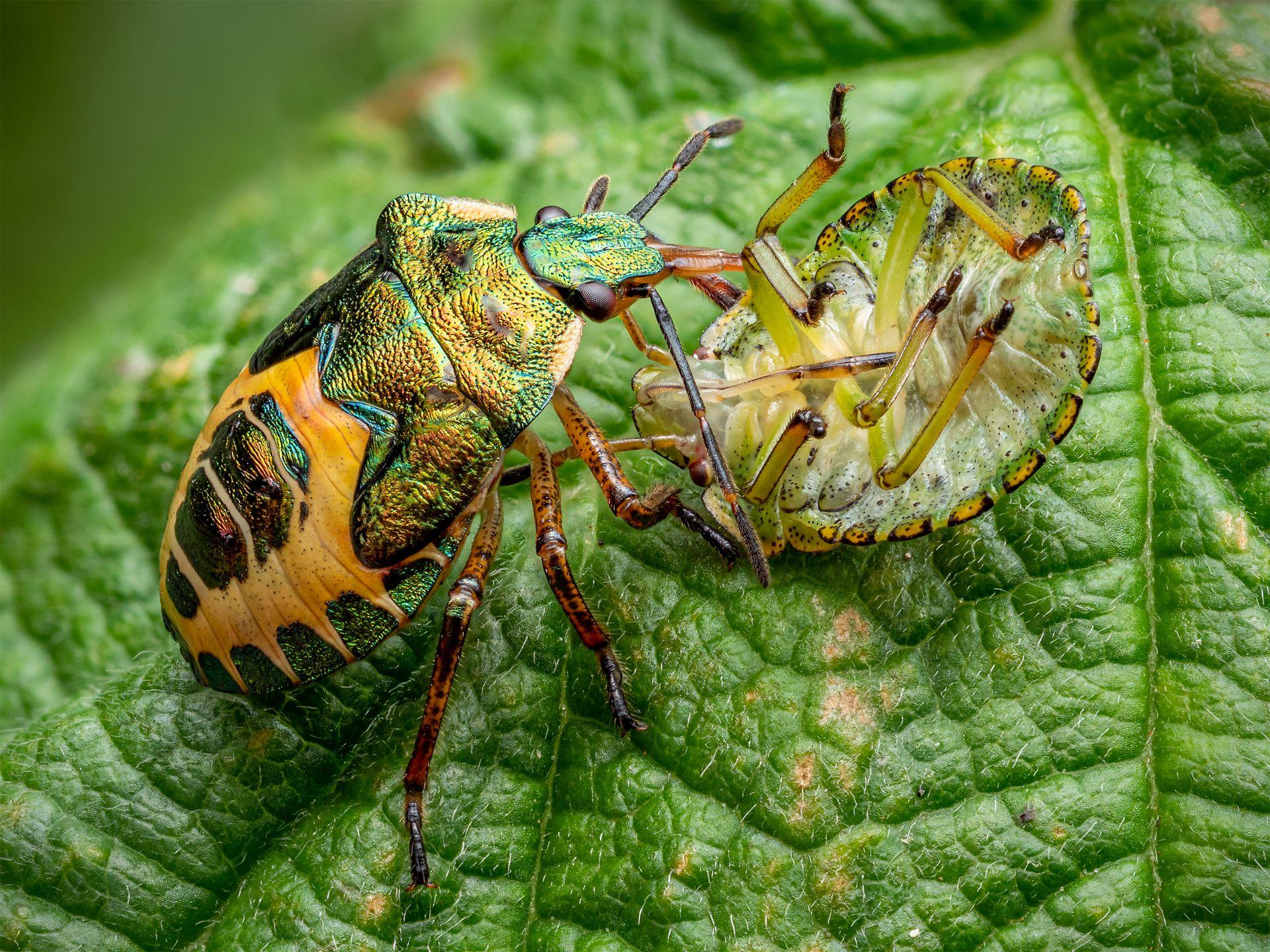 27 BestNaturalHistory BronzeShieldBugFeedingOnGreenShieldBug byStephenYates