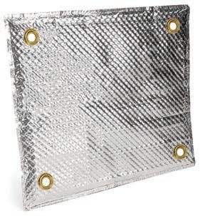 Featuring grommet holes that provide secure mounting points, the universal pads can be hand-formed to fit just about any shape, bend, or curve. Available in two sizes, they block heat and protect components better than factory shields. Offering up to a 2,000-degrees fahrenheit direct-temperature rating, the extremely lightweight pads are made from highgrade, double-sided stainless steel and high-temp insulation. Welded seam edges seal the insulation between the stainless steel sheets.