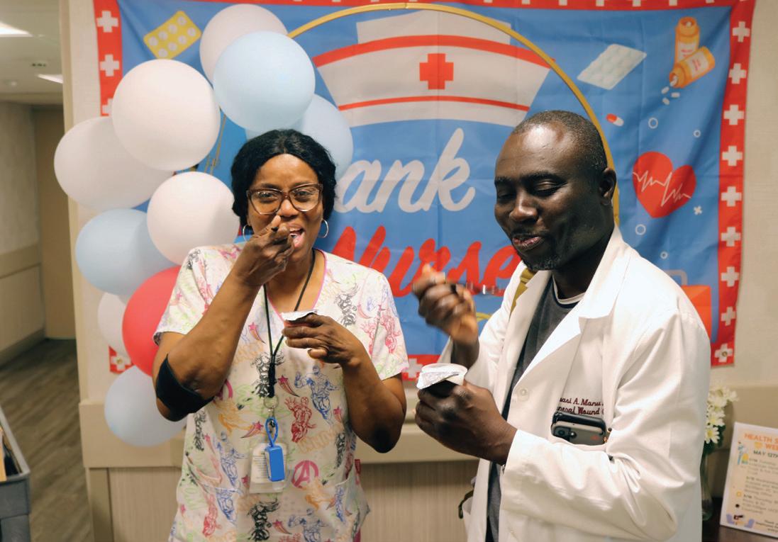 Above, the Nursing team celebrates Michaela Kennerly’s Employee of the Month.
