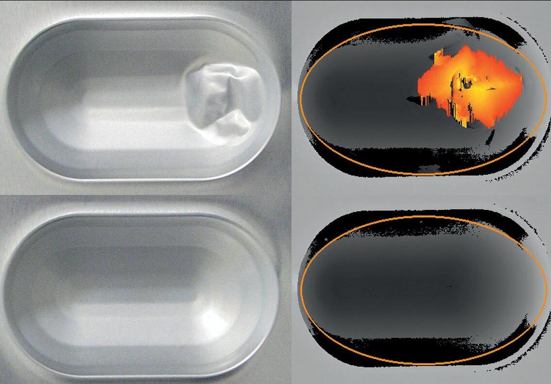 Since SPECTRA 3D operates in real-time, the error-recognition data in blister-formation can be carried over to the bene t of the forming tools. Any divergence from the correct shape can indicate excessive wear-and-tear in the tooling. Early evidence of consecutive errors or increasing error frequency allows early detection of a potential fault,