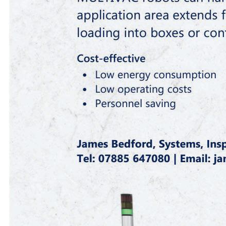 There are two speci c areas where I have already made a start in my rst four months. The rst is to do with standards for vision integration. You may have heard me speak about this at the MVC (see page 7). The second is a reinvigoration of the association’s certi ed robot integrator scheme. Both projects bene t not only the integrators but those who want an objective route to assessing potential suppliers.