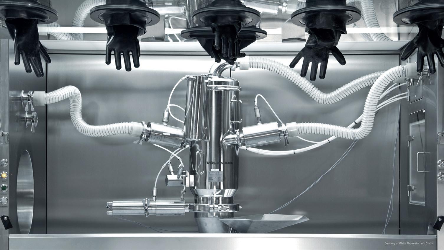 A vacuum system from Volkmann mounted inside an isolator, and able to provide conveying that is efficient and free from contamination