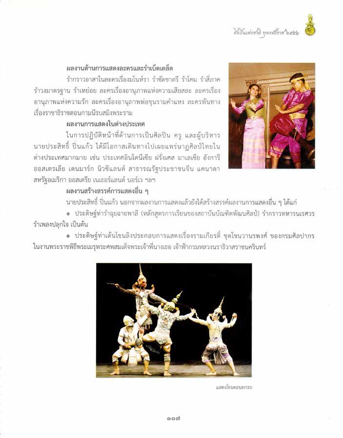 ¹Ò»ÃÐÊÔ·¸Ôì »›¹á¡ŒÇ à¡Ô´àÁ×èÍÇѹ·Õè òô ¾ÄȨԡÒ¹ òôøô ·Õè¡Ãا෾ÁËÒ¹¤Ã ໚¹ÈÔÅ»¹ ·ÕèÁÕ¤ÇÒÁÃÙŒ ¤ÇÒÁàªÕèÂǪÒÞ㹡ÒÃáÊ´§â¢¹Åԧ໚¹Í‹ҧÁÒ¡ ËÅѧ¨Ò¡ä´ŒÃѺ¡Òö‹Ò·ʹ¤ÇÒÁÃÙŒ´ŒÒ¹ ⢹ÅÔ§áÅŒÇ ä´ŒáÊ´§â¢¹ÅÔ§ÁÒâ´ÂµÅÍ´á·º·Ø¡µÑÇ ¹Ò»ÃÐÊÔ·¸Ôì »›¹á¡ŒÇ ¨Ö§ä´ŒÃѺ¤ÇÒÁàÍç¹´ÙáÅÐ ä´ŒÃѺ¡Òö‹Ò·ʹ¤ÇÒÁÃÙŒ´ŒÒ¹ÈÔŻСÒÃáÊ´§â¢¹¨Ò¡¤ÃÙËÅÒÂæ ·‹Ò¹ ÍÒ·Ô ¤ÃÙ¡ÃÕ ÇÃÈÐÃÔ¹ ¤ÃÙÍ๡ ¤ÃÒ»ÃÐÂÙà ¤ÃÙʧѴ âͪСР¤ÃÙºØÞªÑ à©Å·ͧ ¤ÃÙġɪÑ àªÇ§ÃѰ ¤ÃÙª‹ÇÂ ÊØ´áÊ´§ ¤ÃÙ©ÅÒ´ ¾¡ØÅÒ¹¹· ¤ÃÙáÊǧ Íѯ¯ÐÇѪÃÐ ÏÅÏ áÅÐä´ŒÃѺ¡Òö‹Ò·ʹ¤ÇÒÁÃÙŒ´ŒÒ¹ÈÔŻСÒÃáÊ´§ÍÒÇØ¸áÅÐ ¡ÒÃ㪌ÍÒÇØ¸ã¹¡ÒÃáÊ´§â¢¹ËÃ×ÍÅФúҧª¹Ô´ ઋ¹ ¾ÅͧäÁŒ ¡ÃкÕè¡Ãкͧ ´Òº ÏÅÏ ¨Ò¡¤ÃÙ¨íÒ¹§¤ ºíÒà¾çÞ·ÃѾ ³ ¤‹ÒÂËÁÙ‹ºŒÒ¹ª‹Ò§ËÅ‹Í ÃÇÁ·Ñé§ä´ŒÃѺ¡Òö‹Ò·ʹͧ¤¤ÇÒÁÃÙŒ´ŒÒ¹¤ÕµÈÔÅ»Šä·Â à¾×èÍãËŒ áÊ´§ä´Œ¼ÊÁ¡ÅÁ¡Å׹ࢌҡѺº·ºÒ·áÅÐÍÒÃÁ³¢Í§à¾Å§¨Ò¡¤ÃÙ©Ð͌͹ ๵µÐÊٵà ¤ÃÙÅÔ鹨Õè ¨ÒÃØ¨Ã³ ÏÅÏ µÅÍ´ÃÐÂÐàÇÅÒ·ÕèáÊ´§â¢¹ ¹Ò»ÃÐÊÔ·¸Ôì »›¹á¡ŒÇ ä´ŒáÊ´§µÑé§áµ‹à»š¹â¢¹ÅÔ§ ÊԺỴÁ§¡Ø® ¾ÞÒÇҹà ઋ¹ ÊØ¤ÃÕ¾ ¾ÒÅÕ Ë¹ØÁÒ¹ áÅÐä´ŒáÊ´§à»š¹Ë¹ØÁÒ¹·Ñé§µÑÇ ËÃ×ÍàÃÕ¡µÒÁÀÒÉÒâ¢¹Ç‹Ò ÅÔ§âÅŒ¹ ä´ŒáÊ´§à»š¹Ë¹ØÁÒ¹·Ã§à¤Ã×èͧ (ᵋ§à¤Ã×èͧÂÑ¡ÉÊÇÁÁ§¡Ø®) ÍÒ·Ô µÍ¹Ë¹ØÁÒ¹ÍÒÊÒ µÍ¹Ë¹ØÁÒ¹ ¨Ñº¹Ò§ÊؾÃóÁѨ©Ò ¹Í¡¨Ò¡¹ÕéÂѧáÊ´§à»š¹Í§¤µáÅйÔŹ¹· ÃÇÁ·Ñé§ä´ŒáÊ´§ÅФÃáÅÐÃíÒàºç´àµÅç´ ÍÒ·Ô ÃíÒ¡ÃÒÇÍÒÊÒ ã¹ÅФÃàÃ×èͧÁâ¹ËÃÒ ÃíÒ«Ñ´ªÒµÃÕ ÃíÒÊÕèÀÒ¤ ÃíÒàˋ͠ÃíÒâ¤Á ÅФÃàÃ×èͧÍÒ¹ØÀÒ¾ áË‹§¤ÇÒÁÃÑ¡ ÅФÃàÃ×èͧÍÒ¹ØÀÒ¾¾‹Í¢Ø¹ÃÒÁ¤íÒá˧ ໚¹µŒ¹ ¹Í¡¨Ò¡§Ò¹´ŒÒ¹¡ÒÃáÊ´§áÅŒÇÂѧ䴌 ÊÌҧÊÃä¼Å§Ò¹ÁÒ¡ÁÒ ÍÒ·Ô »ÃдÔɰ·‹ÒÃíÒ©ØÂ©Ò¾ÒÅÕ ÃíÒ¡ÃÒÇÍÒÊÒ¹àÃÈÇà ÃíÒà¾Å§»Åء㨠»ÃдÔɰ ·‹Òൌ¹â¢¹ÅÔ§»ÃСͺ¡ÒÃáÊ´§àÃ×èͧÃÒÁà¡ÕÂõÔì¢Í§¡ÃÁÈÔŻҡà ªØ´â¢¹Çҹþ§È ã¹§Ò¹¾ÃÐÃÒª¾Ô¸Õ ¾ÃÐÃÒª·Ò¹à¾ÅԧȾÊÁà´ç¨¾ÃÐ਌ҾÕè¹Ò§à¸Í ਌ҿ‡Ò¡ÑÅÂÒ³ÔÇѲ¹Ò ¡ÃÁËÅǧ¹ÃÒ¸ÔÇÒÊÃÒª¹¤ÃÔ¹·Ã µÅÍ´¨¹à»š¹¼ÙŒ¡íҡѺ¡ÒÃáÊ´§â¢¹ ªØ´¾ÔàÀ¡ÊÇÒÁÔÀÑ¡´Ôì ³ âçÅФÃáË‹§ªÒµÔ ໚¹¤ÃÙ¼ÙŒÊ͹⢹µÑÇÅÔ§ ໚¹ÇÔ·ÂÒ¡ÃãËŒ¤ÇÒÁÃٌᡋ¹Ñ¡ÈÖ¡ÉÒµÒÁʶҹÈÖ¡ÉÒµ‹Ò§æ ¹Ò»ÃÐÊÔ·¸Ôì »›¹á¡ŒÇ ໚¹ÈÔÅ»¹¼ÙŒ¼´Ø§ÃÑ¡ÉÒäÇŒ ´ŒÇ¤ÇÒÁ§ÒÁµÒÁẺἹ¢Í§ÈÔŻСÒÃáÊ´§â¢¹ ·ÕèÁÕº·ºÒ·¡ÒÃáÊ´§â¢¹ÅÔ§·Ø¡µÑÇã¹àÃ×èͧÃÒÁà¡ÕÂõÔì â´Â੾Òк·ºÒ·¢Í§Ë¹ØÁÒ¹«Öè§äÁ‹à¼ÂãºË¹ŒÒ ´ŒÇÂÃÐÂÐàÇÅÒÁÒ¡¡Ç‹Ò ôð »‚ ¾ÃŒÍÁ·Ñé§ÁÕ¤ÇÒÁµÑé§ã¨ คำไวอาลัย นายประสิทธิ์ ปนแกว ศิลปนแหงชาติ สาขาศิลปะการแสดง (นาฏศิลป-โขน) พุทธศักราช ๒๕๕๑