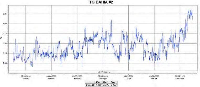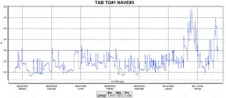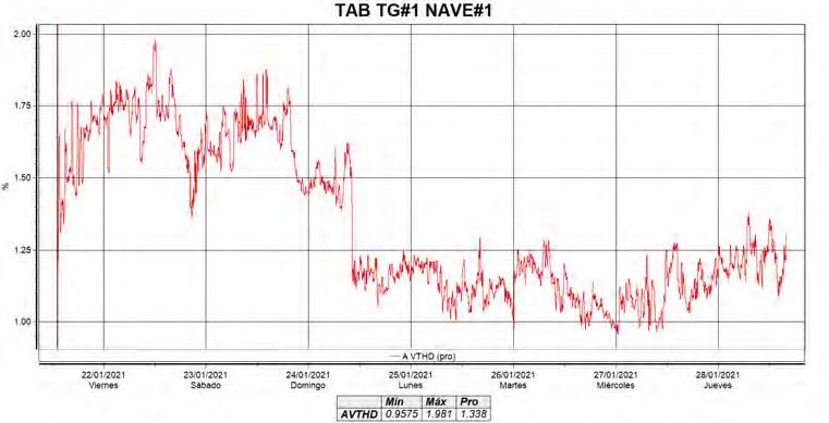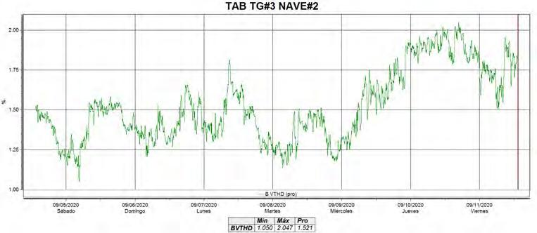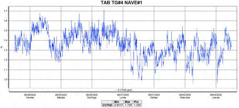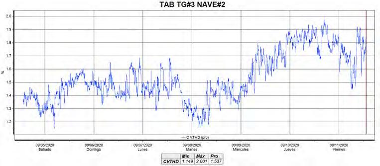 Observación: Se registra una distorsión que oscila entre 1.561% y 2.867% con un promedio de 2.131%, los valores máximos y mínimos no se consideran para este análisis.