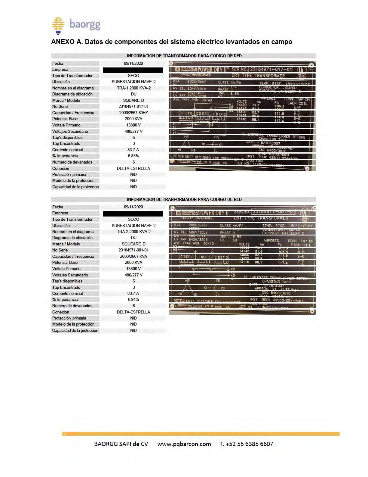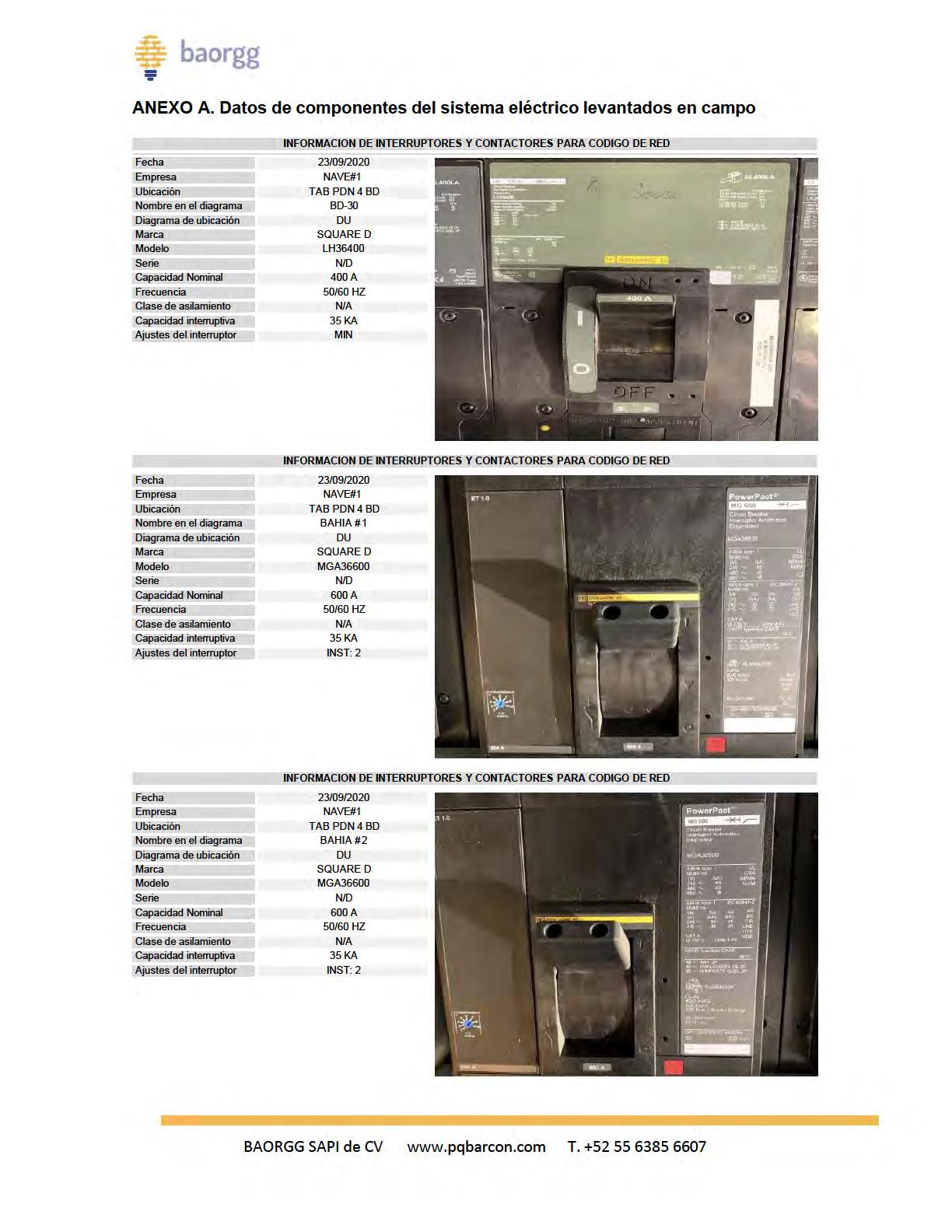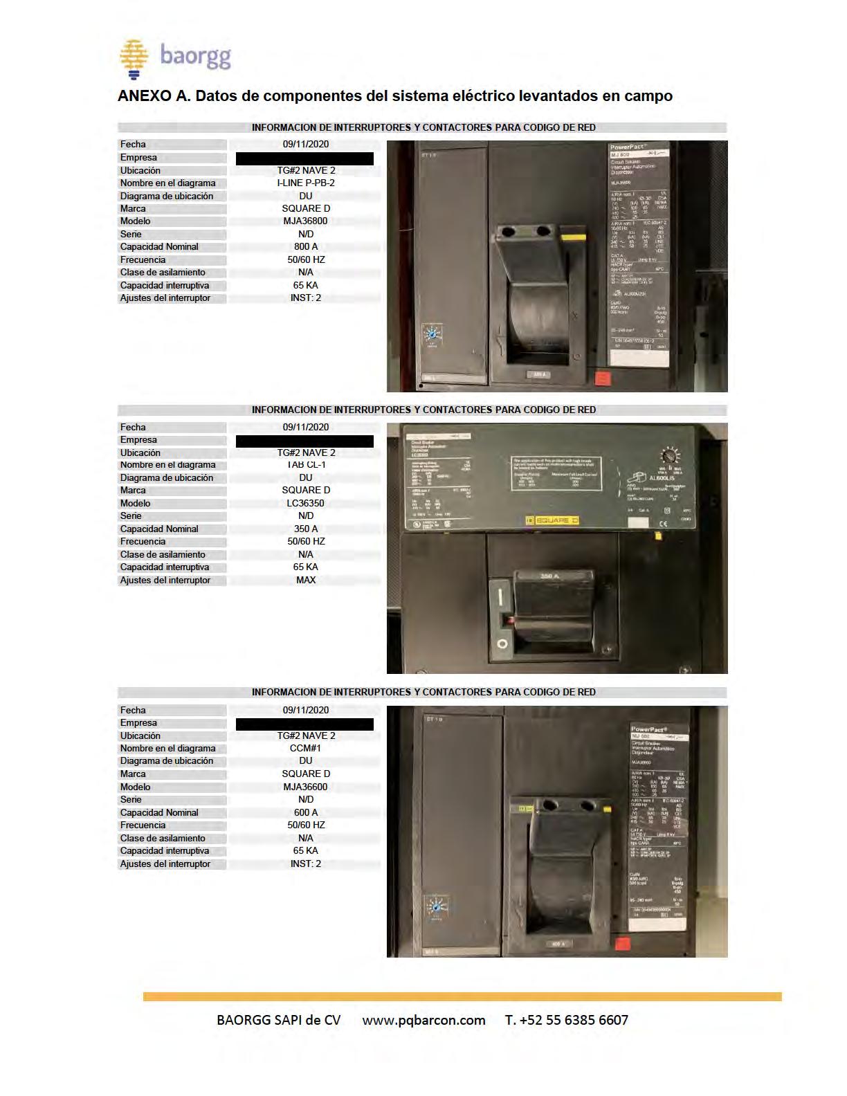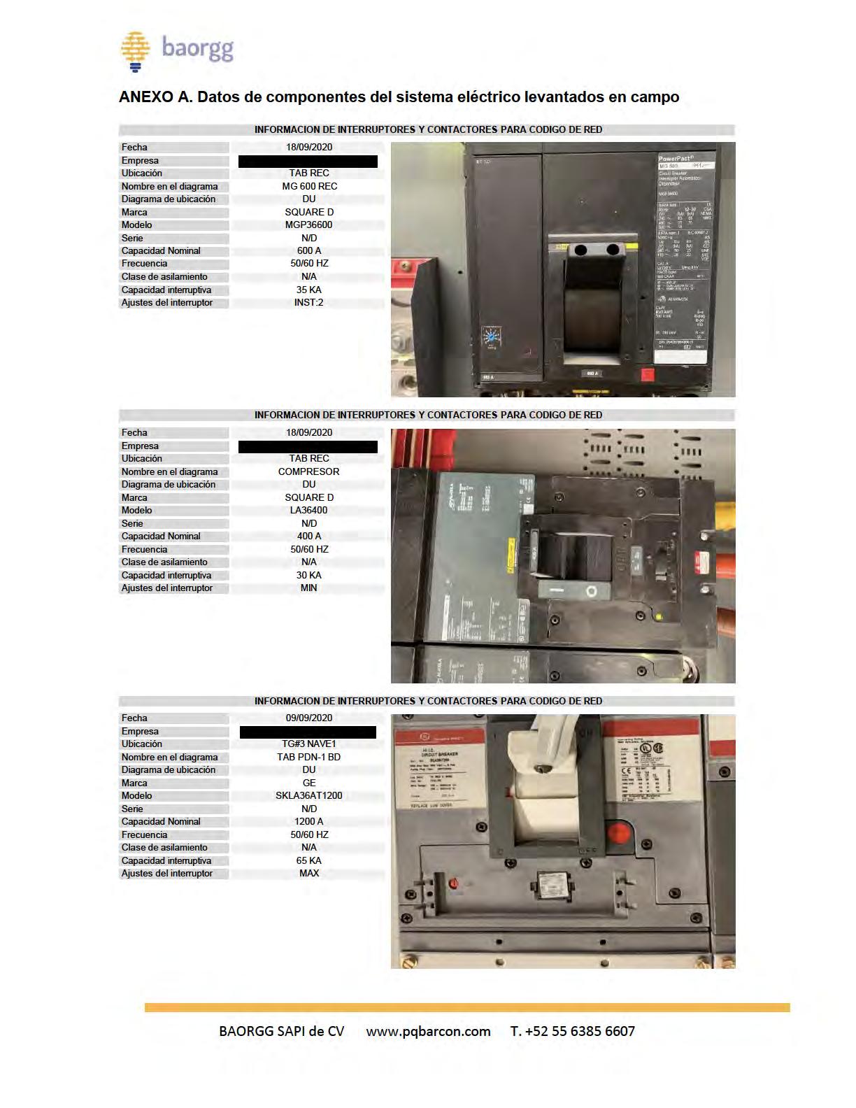 • Reporte impreso y digital (PDF) con información del sistema eléctrico principal del centro de carga, con evidencia fotográfica, resultados de estudios de ingeniería, así como dictámenes técnicos de cada estudio.