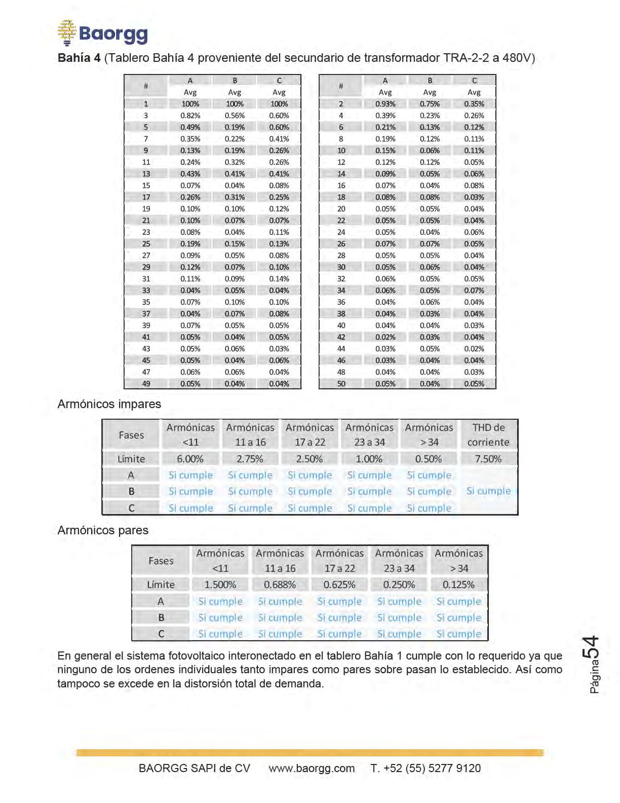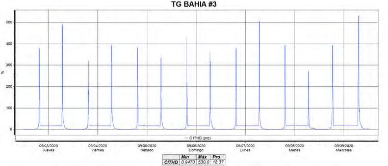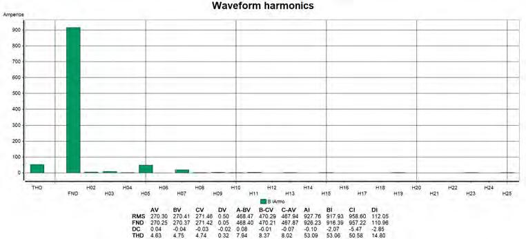 Observación: El valor más alto es el de la 5ª armónica con 9.999% con respecto a la corriente total de la fundamental (479.10 A).