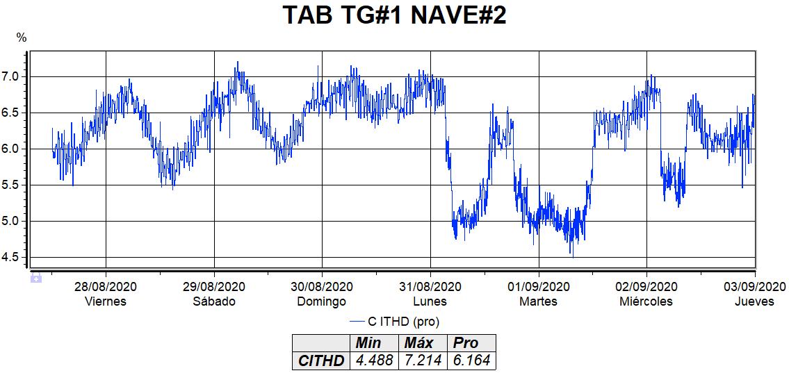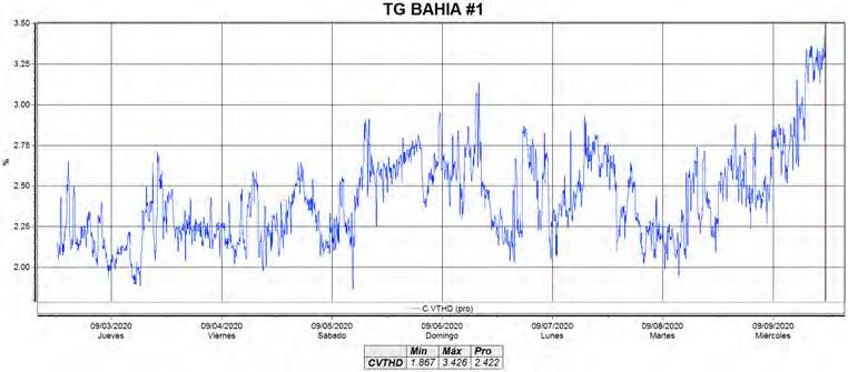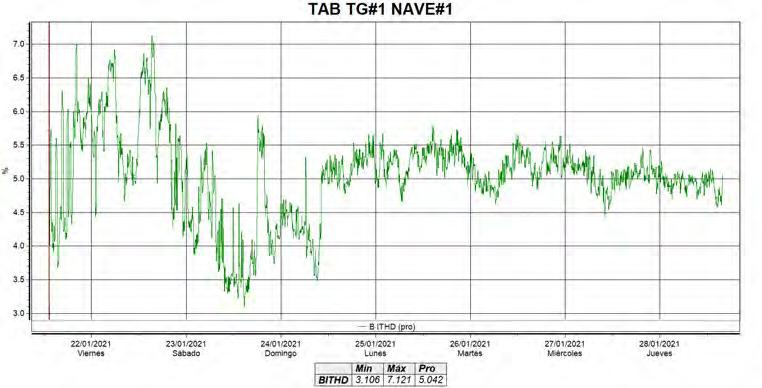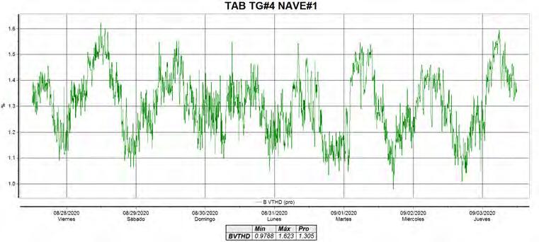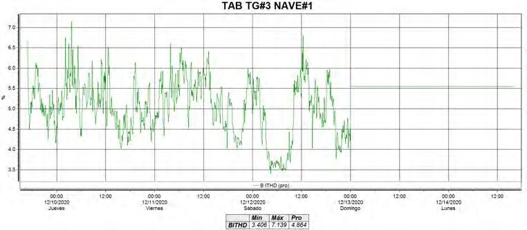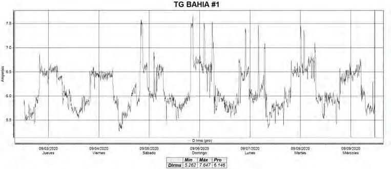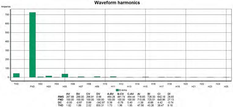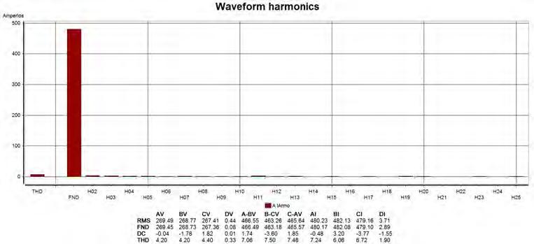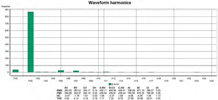 Observación: El valor más alto es el de la 7ª armónica con 1.334% con respecto a la corriente total de la fundamental (230.55 A).