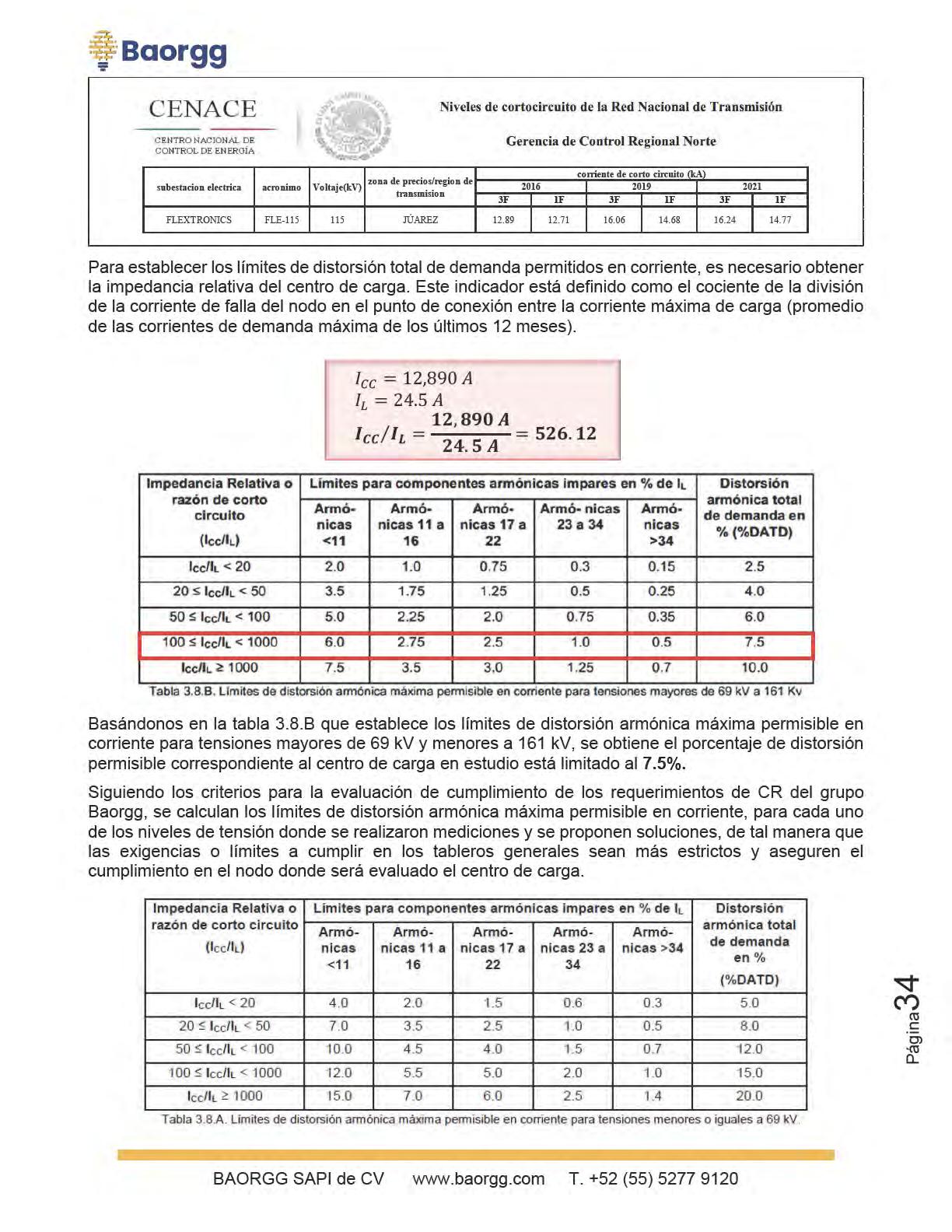 En la parte final del anexo “C” de este reporte se encuentran los resultados de los estudios de Corto Circuito y evaluación de dispositivos (Capacidad Interruptiva vs Corriente de Corto Calculada) del centro de carga considerando el máximo valor en la ventana de tiempo futuro publicado por el CENACE.