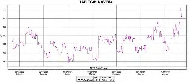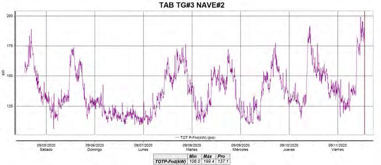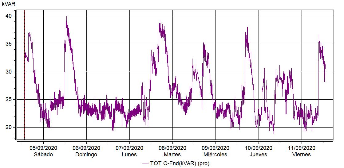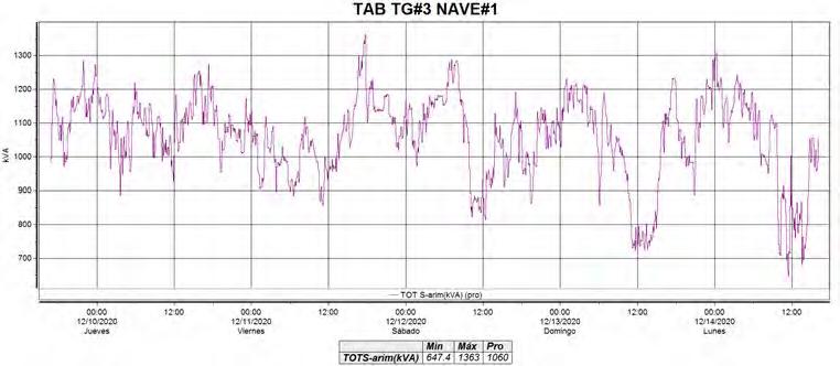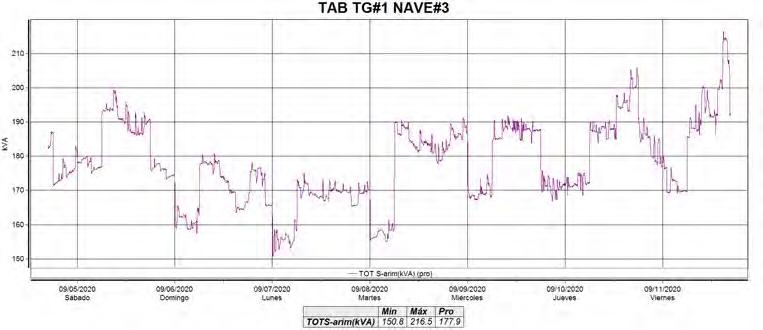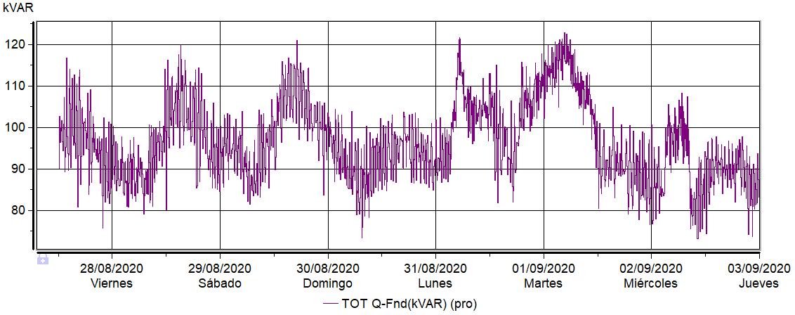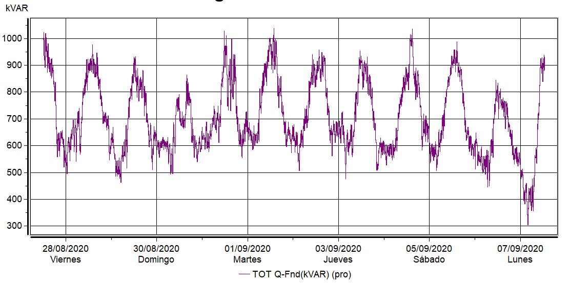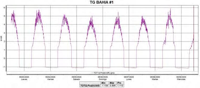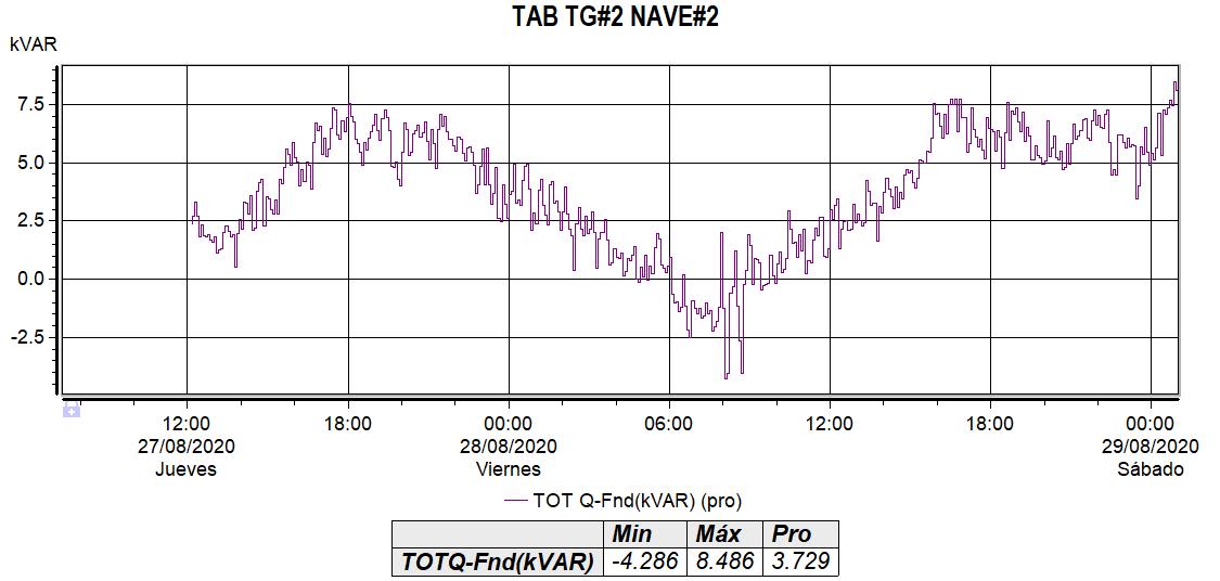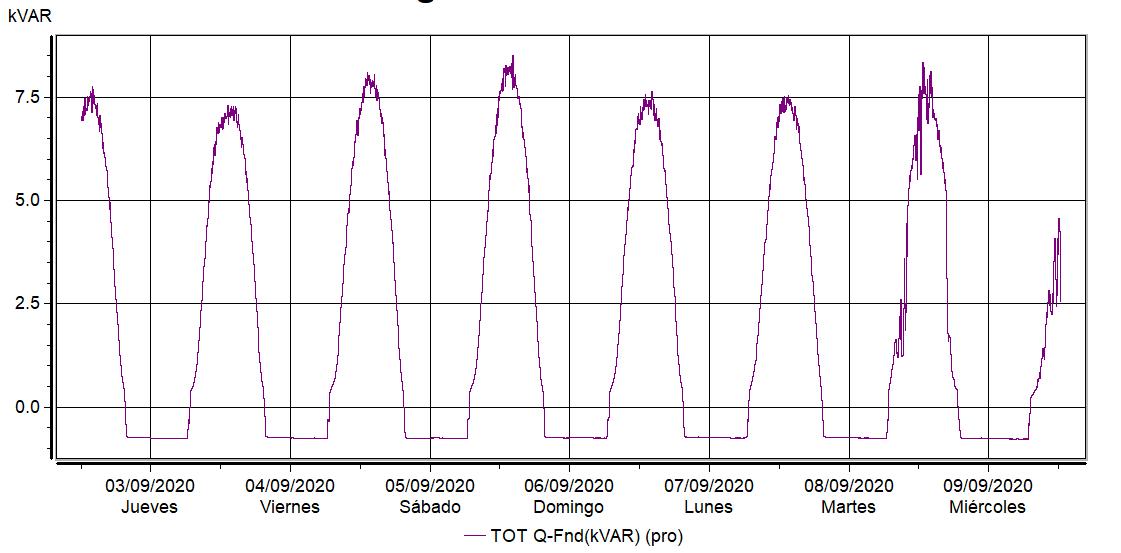 Observación: La demanda de reactivos es variable, oscila entre los -1.158 kVAR a los 5.896kVAR, con un promedio de 1.115 kVAR.