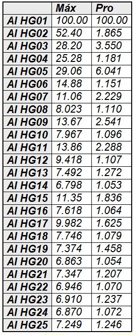Observación: Se registra una distorsión que oscila entre el 1.221% y 442.0%, con un promedio del 20.37%. Los valores máximos y mínimos no se consideran para este análisis.