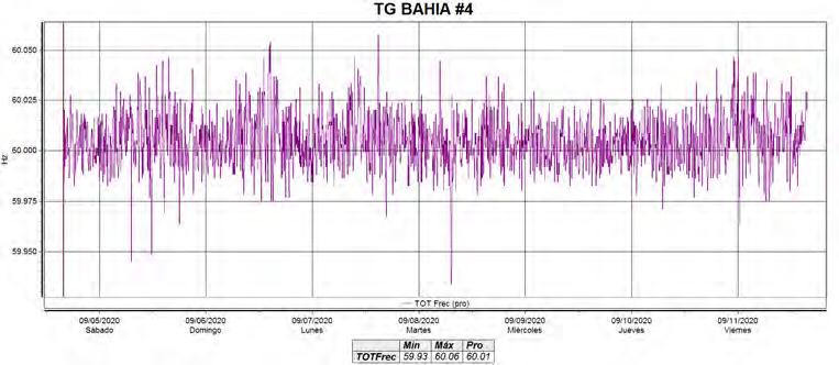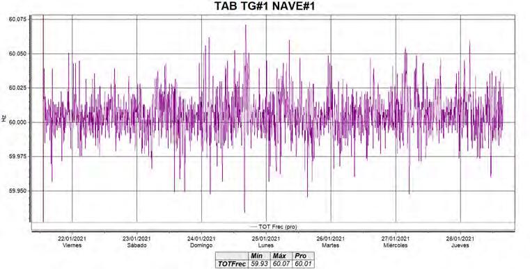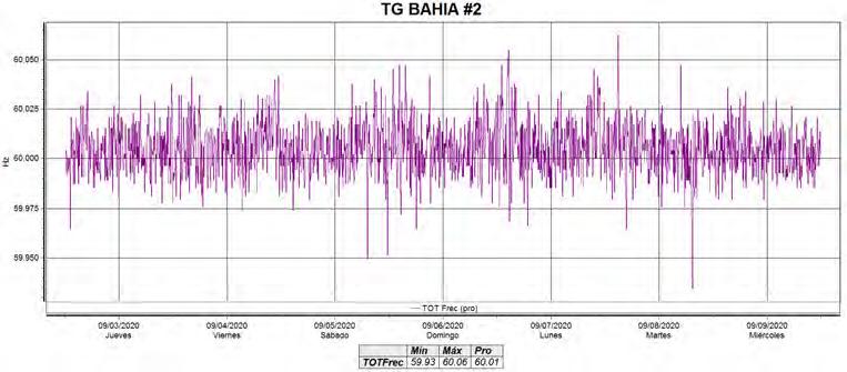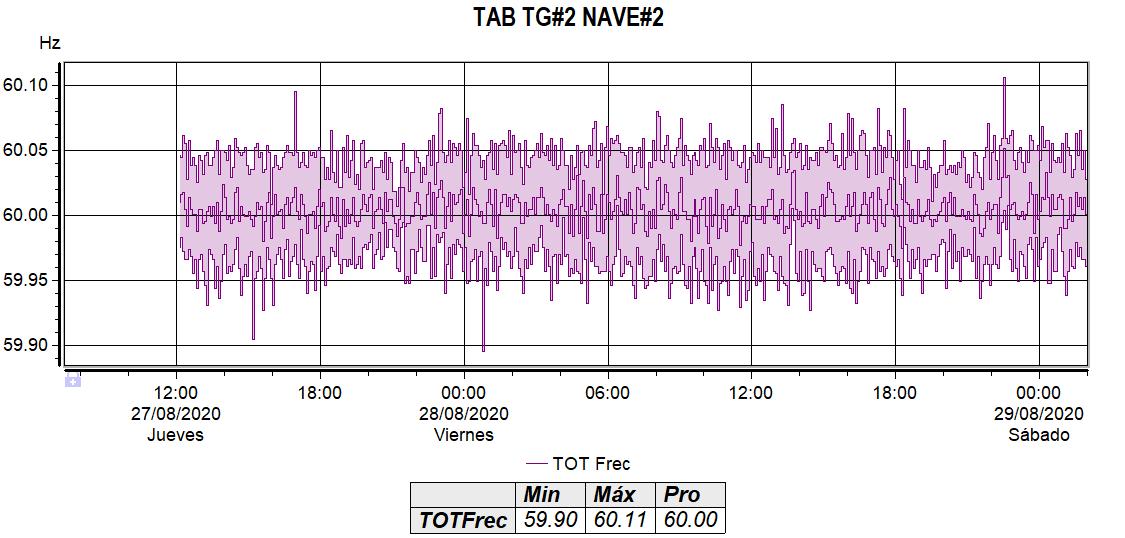 Observación: La frecuencia oscila entre 59.94 Hz y 60.06 Hz. Sin variaciones considerables