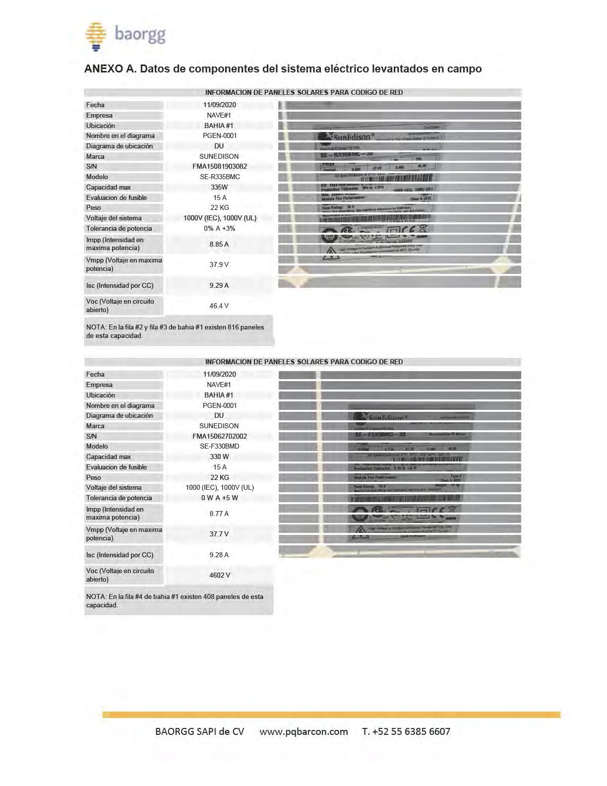 o Anexo “G” Valores de corto circuito y recibo de facturación eléctrica.