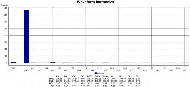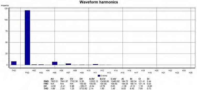 Observación: El valor más alto es el de la 25ª armónica con 30.42% con respecto a la corriente total de la fundamental (390.40 A).