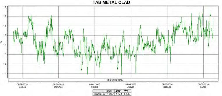 Observación: Se registra una distorsión que oscila entre 1.749% y 2.591%, con un promedio de 2.119%.
