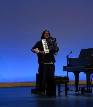The crowd enjoys “Love Never Felt So Good” by Michael Jackson, “Rocket Man” by Elton John, “Rich Girl” by Daryl Hall and John Oates (on the accordion!) and “Mr. Brightside” by The Killers