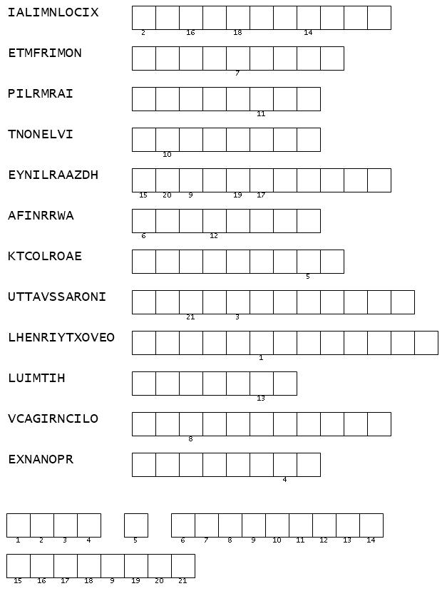 HOW WELL DO YOU KNOW YOUR DRUGS? FIRST SOLVE THE ANAGRAMS AND THEN DECODE THE HIDDEN MESSAGE. MATCH THE NUMBER UNDER THE LETTERS WITH THE NUMBER IN THE MESSAGE.