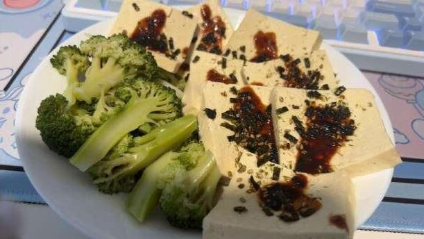 Plain boil firm tofu and dress with a bit of teriyaki sauce & furikake